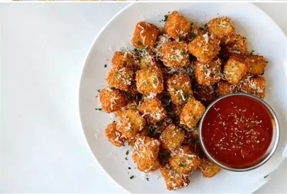 步骤二:把茄丁放入但也中浸泡,然后裹上面粉,最后裹上面包糠。