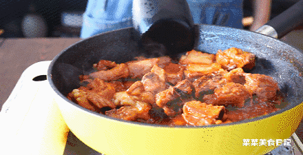 5.下排骨,大火烧开后,转小火焖煮至排骨酥软