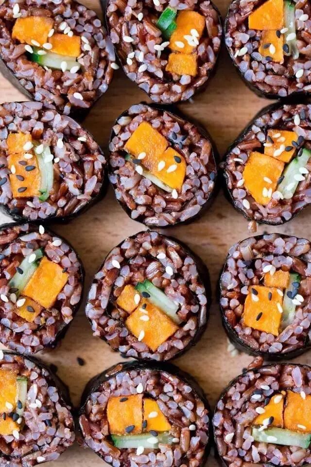 用红米和南瓜一起包饭团,一口一个,好吃又健康。