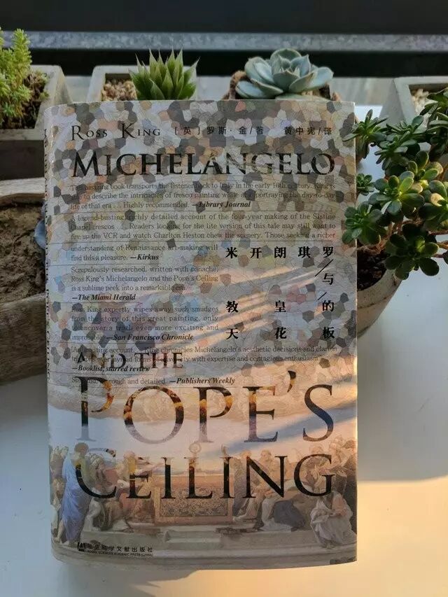 前些日子去罗马,没做任何功课。这本《米开朗琪罗与教皇的天花板》也只翻了下彩页,就随手搁书架上了。后来临时改变行程,只在罗马待了两天半。花大半天时间去圣彼得大教堂和旁边的梵蒂冈博物馆,在迷宫般的博物馆里无法确认哪个是西斯廷礼拜堂。礼拜堂的穹顶很高,仰头看壁画也就是个大概,细节基本看不清。从人群里挤出挤进,只留下模糊的大概印象。最强烈的感受:难怪艺术品总遭抢劫,我都想搬一件回去!