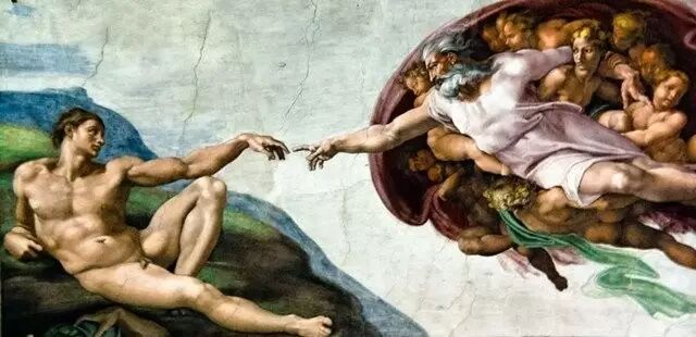 充满曲折,引人入胜。几百年后,在罗马,随处可见一件艺术品的局部仿作:两双相隔很近,指尖相对手。那是米开朗琪罗笔下《创造亚当》里,上帝和亚当的手。