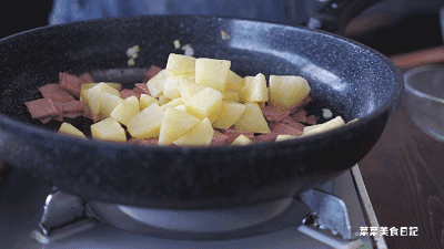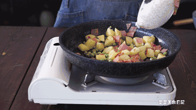 提前翻炒过的土豆和火腿都带有焦香,使饭的味道层次更丰富。