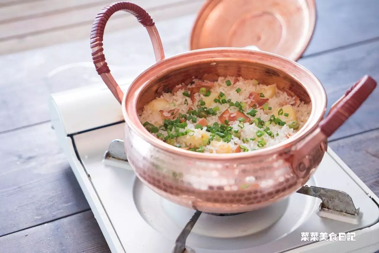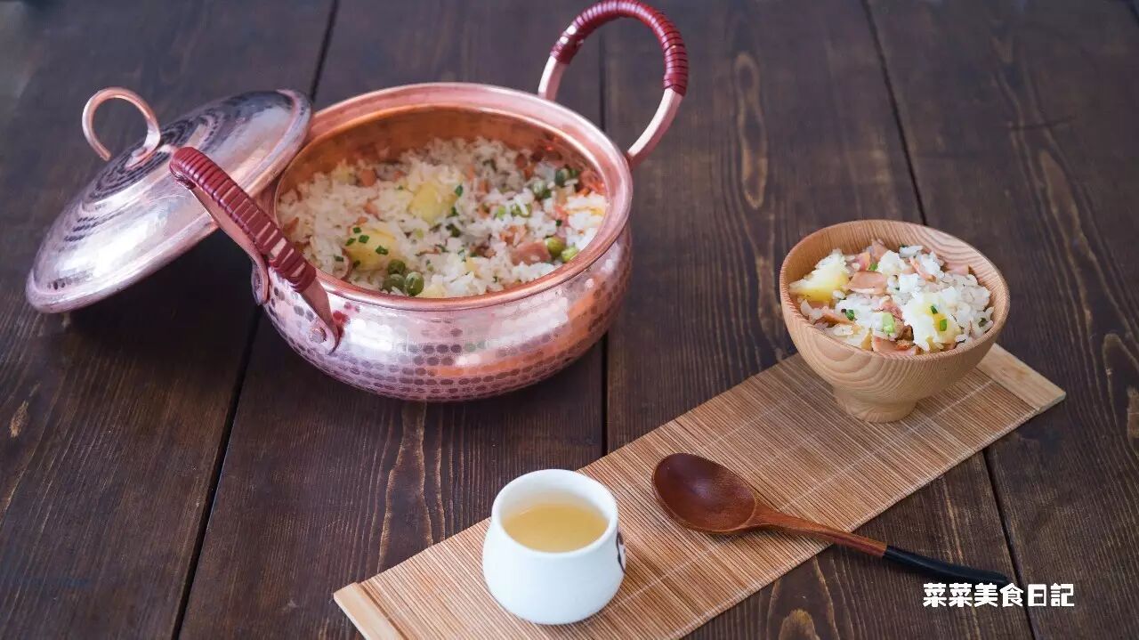 用铜锅的余温烘干锅内的水汽,揭盖后就不会饭面湿糊,而且焖过之后锅巴更好吃。