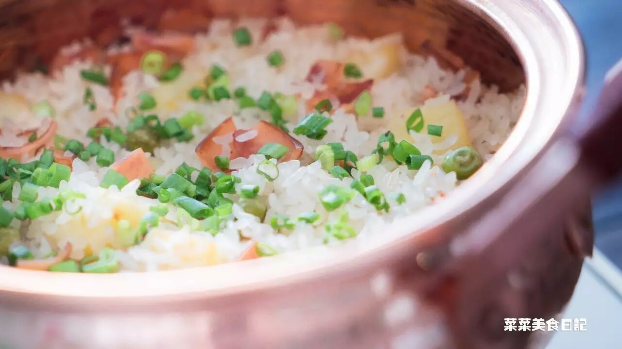加油会让米饭更易熟还很香。米按正宗做法应该用粳米,但大家在家也可以尝试糯米和粳米1:1混合,煮出的米饭还要更香一些。