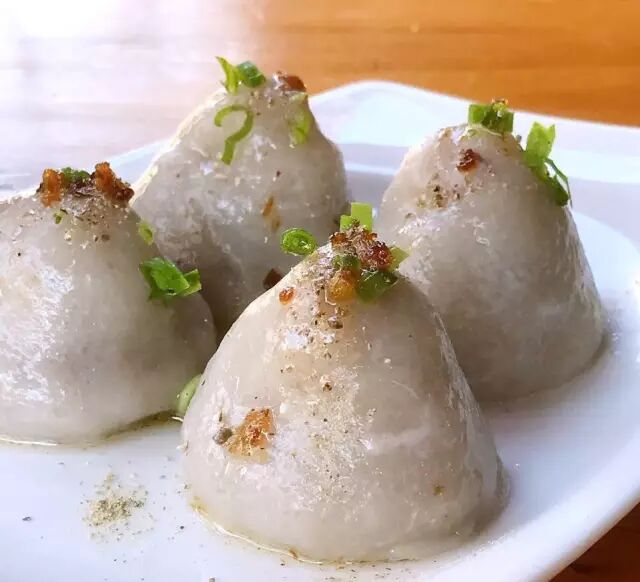 肉甲子是客家蒸饺的一种,饺子皮用米浆做的,不似北方用面粉。口感较为细腻,润滑又不失柔韧。