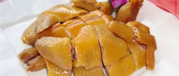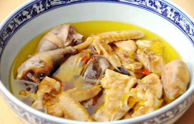 阉鸡最好,肉质脆味道鲜。只需要盐、姜、酒,不放一滴水。出锅后,将表面的一层油撇下来,加点汤汁、葱白条、姜丝是为蘸料。