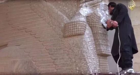 当然馆方也以保护文物来解释。2015年3月,伊拉克内战中,尼姆鲁德古城遗址遭到“伊斯兰国”肆意破坏,几乎夷为平地。“伊斯兰国”声称,亚述古城里的那些古老雕塑和神庙是“虚假的偶像”,必须摧毁。武装分子用爆破和重型机械铲平古城,用手持电钻破坏尼尼微城遗址中存留的花岗石翼牛像,可谓当代文明史上惨烈的浩劫。