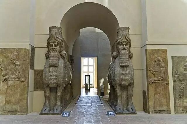 卢浮宫陈列的博达发掘的科尔萨巴德带翼牛面人首石像
