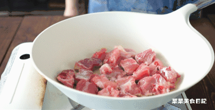 2.排骨洗净切段,入锅煎到表面微黄,加入料酒烹煮去腥
