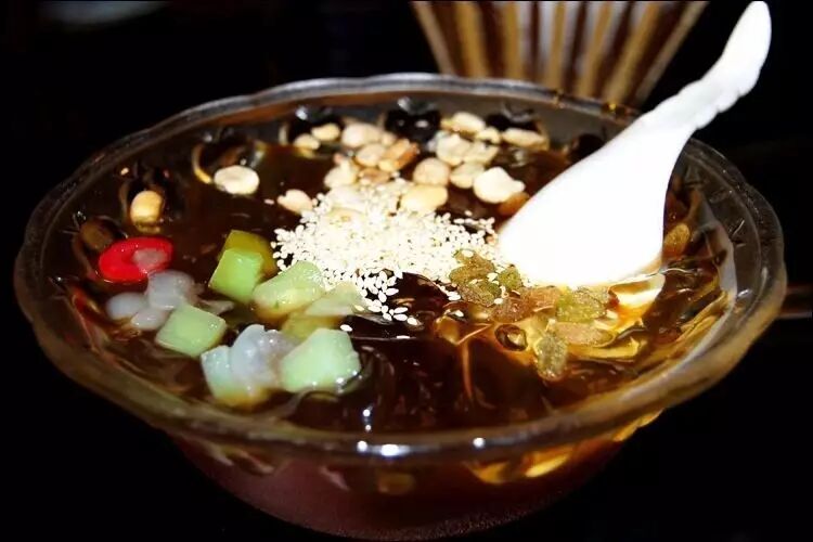 这大概是十几年前的场景。不是所有的井水都能够让冰粉成型,也不是所有的尝试制作都能成功,所以冰粉很难蔓延全国,只是在产冰粉树的各地成为当地特色。但是现在的冰粉制作却变得极为简单,买一包提纯过的冰粉粉,按照配料放入粉末和纯净水,搅拌均匀放进冰箱冷藏,然后便万事大吉!虽然少了地域性的神秘感,却简简单单物美价廉唾手可得,这真是科技改变生活——吃货的。