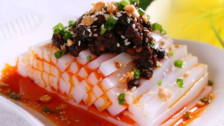 西安的卤汁凉粉是以绿豆淀粉制作而成