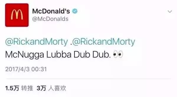 终于...麦当劳回应了...而且是用瑞克的口头禅“Lubba Dub Dub”回应的.....
