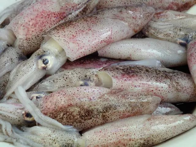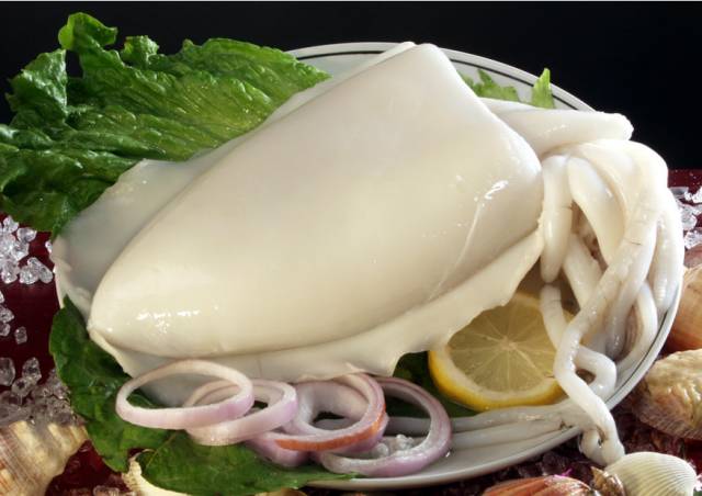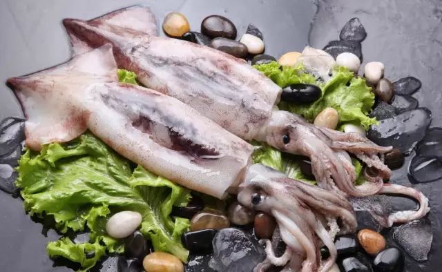 优质鱿鱼体形完整坚实,呈粉红色,有光泽,体表面略现白霜,肉肥厚,半透明,背部不红。