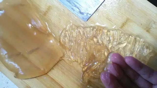 方法1:将海蜇皮在淡水里浸泡两小时后再搓洗,然后剥去褐色薄皮。在吃前切好后再用醋浸泡5分钟以上,洗净即可。