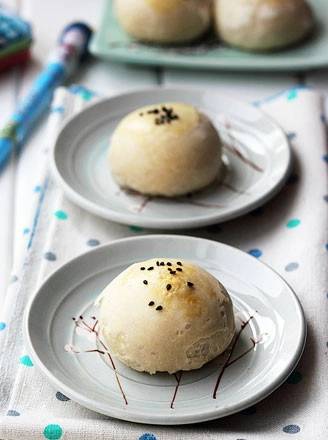 8、包好馅的酥皮胚子,盖上保鲜膜松弛10分钟,然后刷一层蛋水;