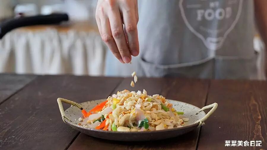 如果条件允许的话,最好是选择新鲜的河粉制作Pad Thai,否则可以像菜菜一样,购买干河粉,提前用热水泡开后,再进行炒制;