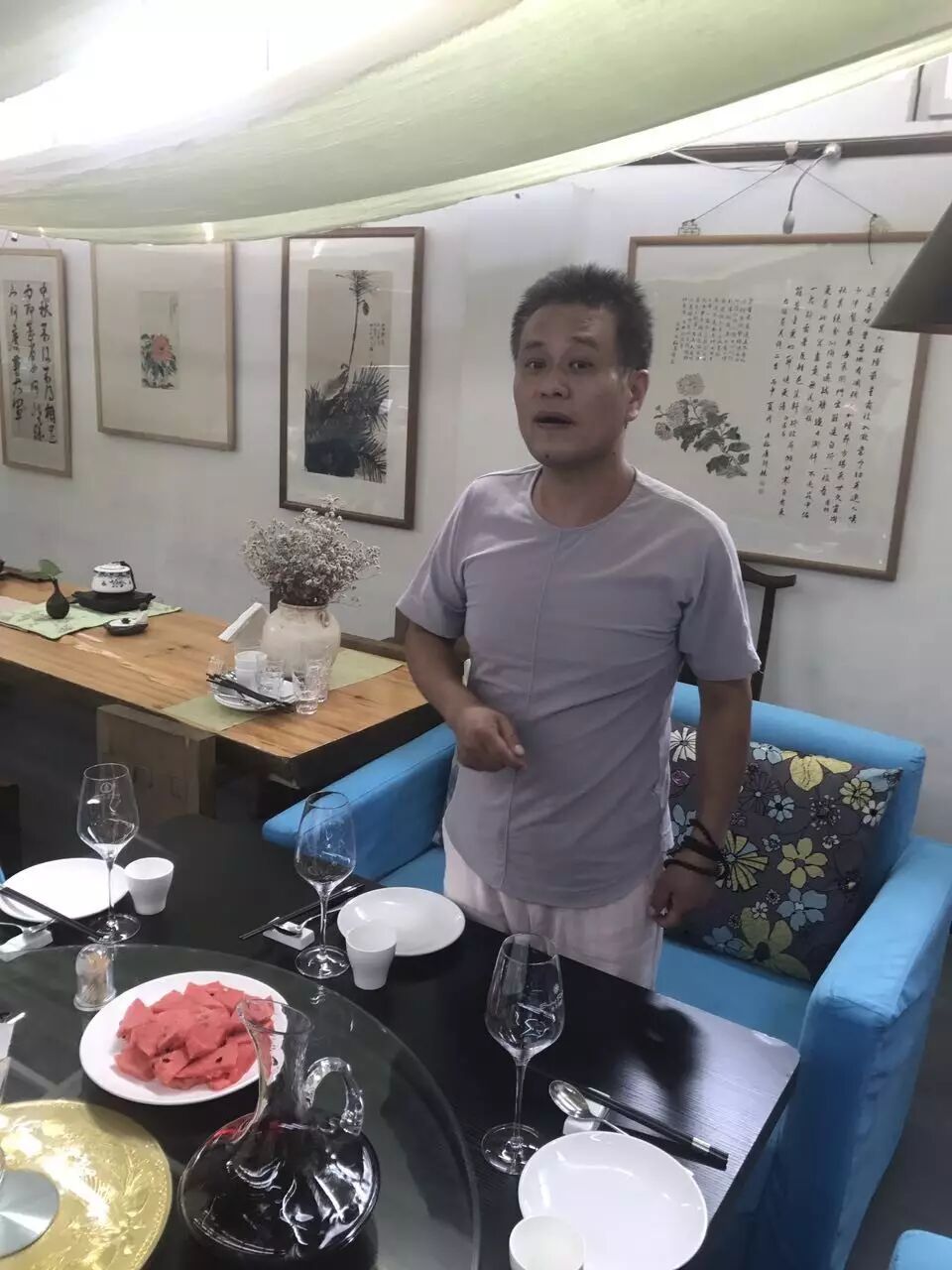 十几年间,各生变故,老钱兜兜转转,转到河北怀来,买了村子里的房子,写书法,搞音乐,顺便做点私房菜。好些年不见了,只在微信上互相点赞罢了。那些以音乐下酒的时光,似乎已经不再,然而一场高速上的堵车,把我鬼使神差的发送到老钱身边。