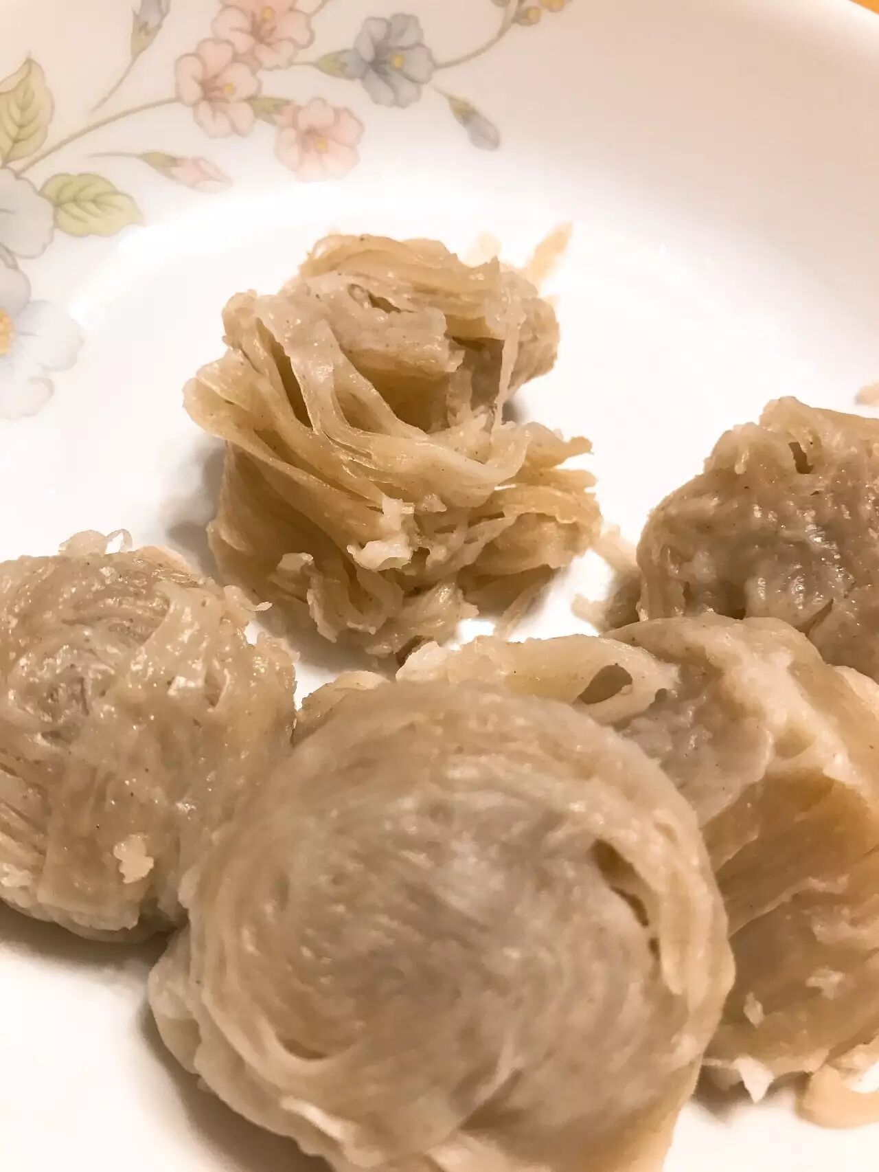 到了杭州,再晚我也会跑到东山弄陈立教授家里喝一口茶,聊一会天,陈立教授像变戏法一样,端进来各种好吃的。前几天去杭州,在40度高温的笼罩下,他给我端来一小碗木莲豆腐,其实类似冰粉,晶莹剔透的果冻,冰凉解暑。还会变出一份陕西三原小吃金线油塔,丝细层多,不知不觉可以吃下半盘。