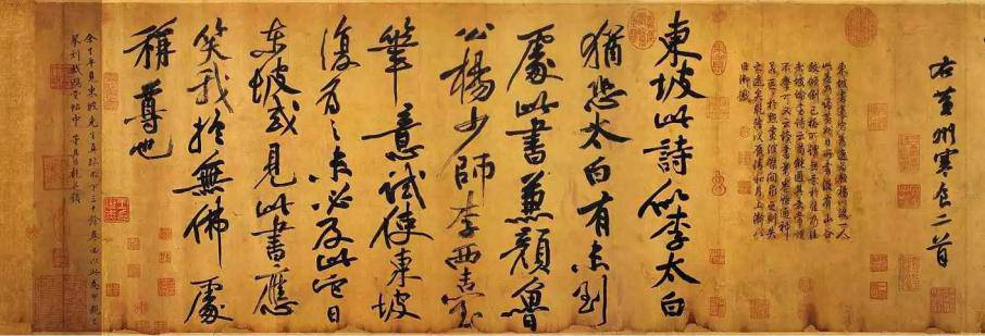 苏轼《黄州寒食帖》(部分)上面有着各个时期不同文人的题跋