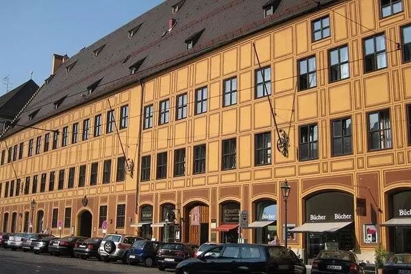 这栋建筑毁于二战轰炸,如今所见,是重建之后的样子。正门上的哈布斯堡双头鹰族徽,说明神圣罗马帝国皇帝曾驻跸于此。1518年,教皇委派的代表也在这里讯问马丁·路德。可见此人在教俗两系,都能手眼通天。他的另一过人之处是融资。他知道如何说服权贵们,把钱贷给自己,从事新的投资,包括新兴的东方香料贸易。
