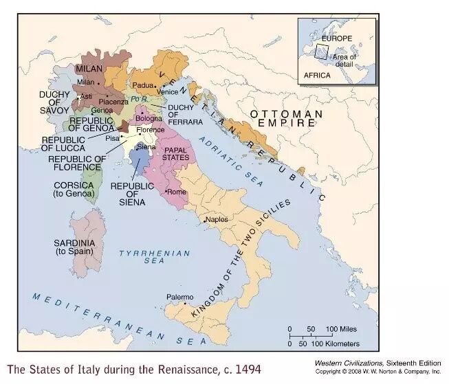 中世纪晚期,这一带的城市通过生产和贸易,率先实现繁荣,而佛罗伦萨只是其中之一。后来由于各种原因,它通过军事、经济上的优势,逐渐在这一地区获得统治地位,它的文化艺术也开始获得垄断地位。前面提到过的瓦萨里,虽说本人来自阿雷佐,但在艺术家群传当中,言必称佛罗伦萨诸家。锡耶纳画派当中除杜乔之外,如多米尼科·贝卡福米、内罗乔·德·兰迪、马泰奥·迪·乔瓦尼,影响至今不出本城。