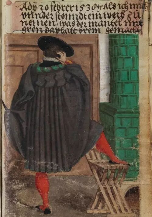 十六世纪的奥格斯堡,有个名叫马太·施瓦茨的会计。从1520年起,他开始把自己各种装扮的画像,穿着他自己觉得最拿得出手的衣服,汇集到一本棕色皮面的册子里,而且这样一干就坚持了四十年。他还为每一幅册页,写两句简单的说明文字,记述这套服饰的各种细节,从领饰到袖边,还有穿戴的场合,哪些是私人聚会,哪些是公共活动。总之就是一个虚荣直男不断地换装摆姿势。
