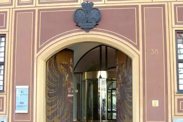 ▲福格尔公馆正门,门上有哈布斯堡双头鹰族徽