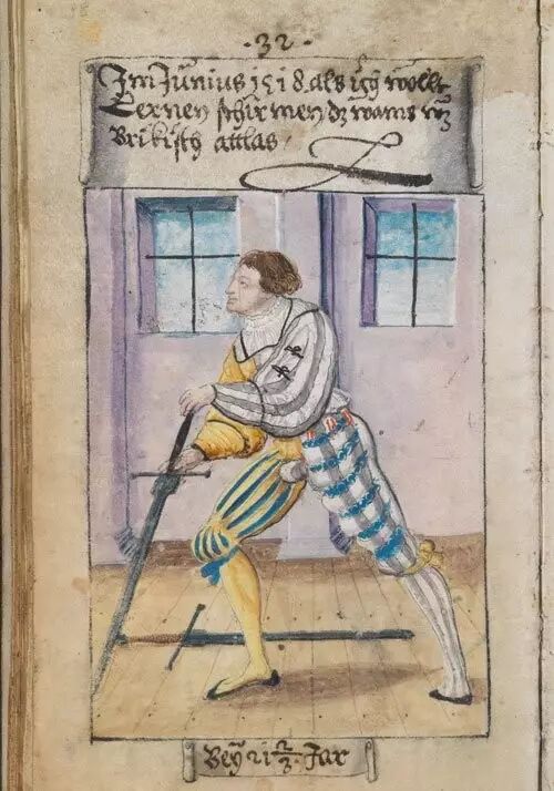 ▲1518年8月,紧身裤裤缝上镶着真丝缎带。那时候我爱死射箭了。