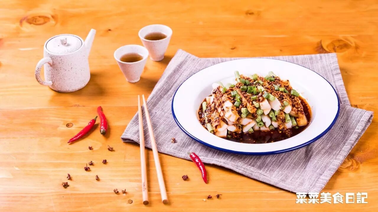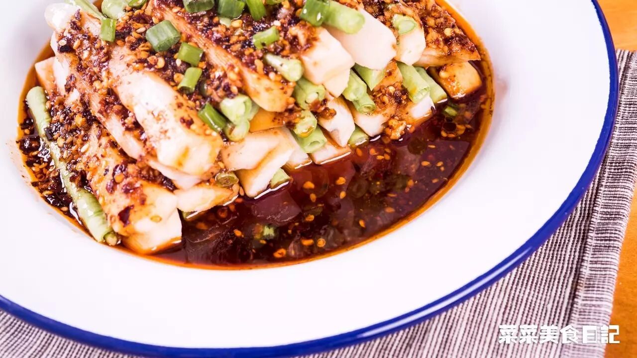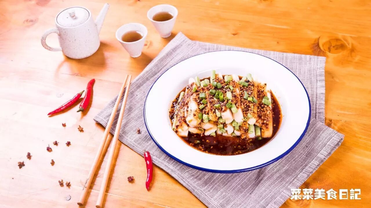 这次的酱汁调的是地道川味,用醋,酱油,麻油作底,配上四川的花椒油和红油,味道咸鲜中带着酸辣。