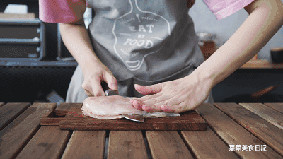 拿锤子砸可以让肉质松散,不发柴,后面也更容易卷起来