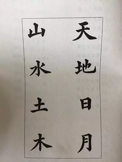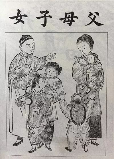 比如《最新国文教科书》初小第一册第一课,只有八个单纯的汉字:天,地,日,月,山,水,土,木。第二课才出现家庭图景,要学的是四个字“父,母,子,女”。