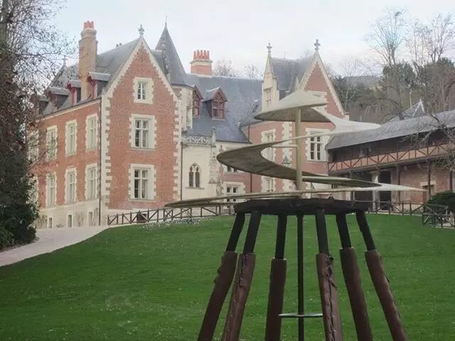 距此不到一公里,另有一座小城堡,叫克洛·吕塞(Clos Lucé)。当年弗朗索瓦一世,就把雷奥纳多安顿在那里,地下还有一条暗道相通。现在那是一家博物馆,主题就是雷奥纳多·达·芬奇的生平和发明创造。除了大师生前的卧室、客厅,花园中还有几十件模型,都是根据他的发明制作的。其中一些构想,很多远远超越他的时代,比如直升机、坦克、传动带、蜗杆、多管速射炮。