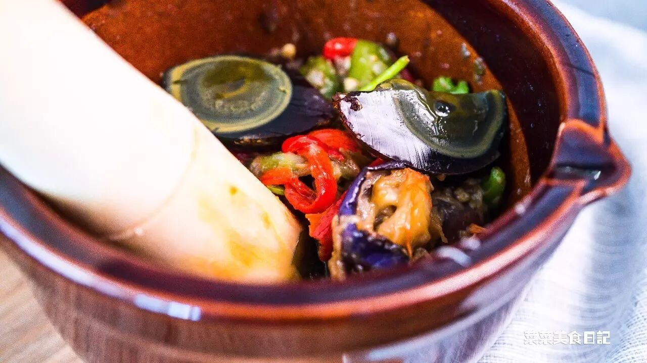 擂茄子里擂的也不止是茄子,一般还有辣椒和皮蛋。
