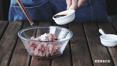 2.五花肉剁成肉末,加入适量生抽和淀粉,搅拌均匀。