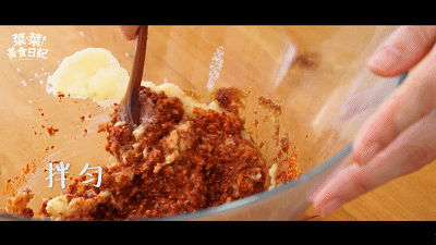 5.加入辣椒粉、苹果糊、鱼露、酱油、虾酱、白糖,搅拌均匀,再加入糯米糊
