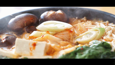 泡菜的酸爽渗入汤汁,所有食材都无比入味,大热天里,吃得一身汗也舍不得放手。