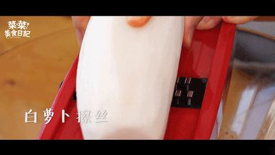 6.白萝卜擦丝,葱切段,放入腌料中,拌匀