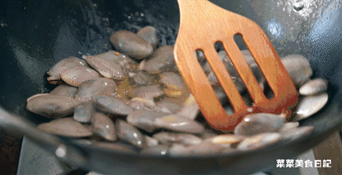 3.锅中留油,下姜蒜辣椒爆香,猛火吵到蛤蜊全部开口。