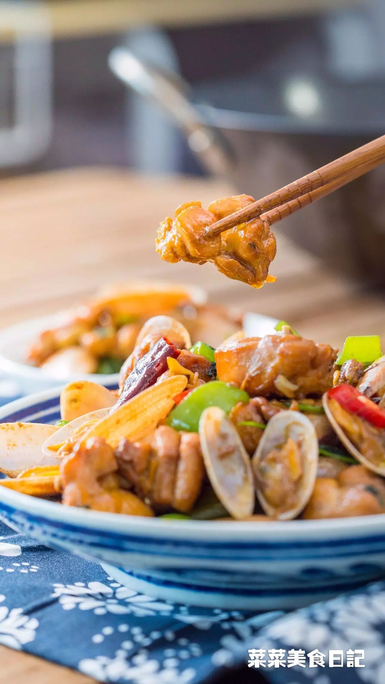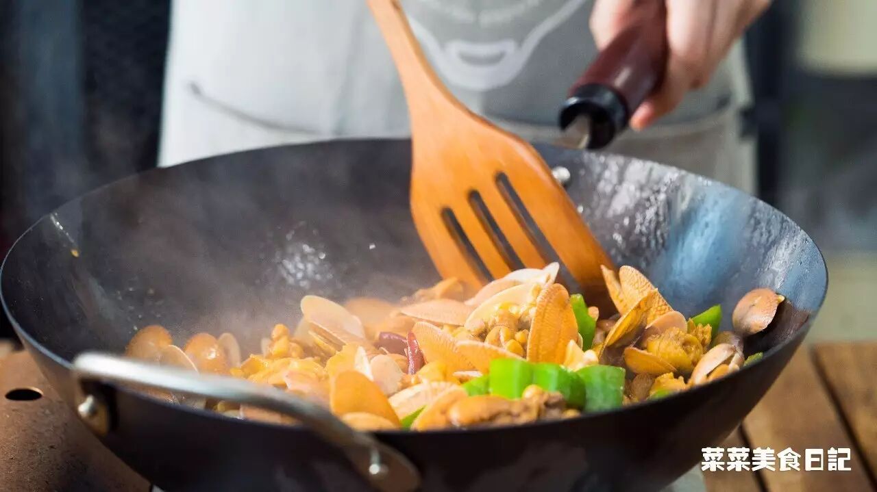 全程要猛火,保证鸡肉蛤蜊里的汁水牢牢锁住。两者再放到一起混炒,让鲜味互相交融。