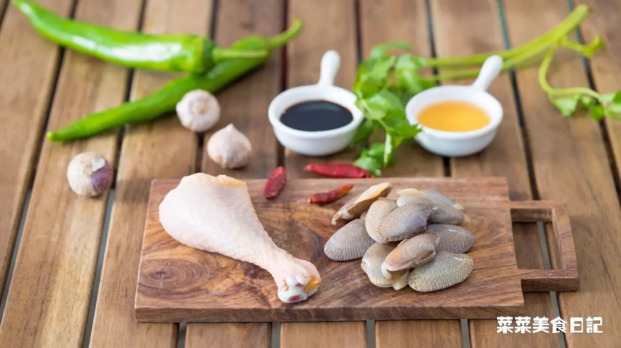 鸡肉要选口感细嫩的仔鸡,我换成了同样细嫩但肉厚的鸡腿肉;蛤蜊要挑鲜活的,如果是靠近海边,那就更好了。