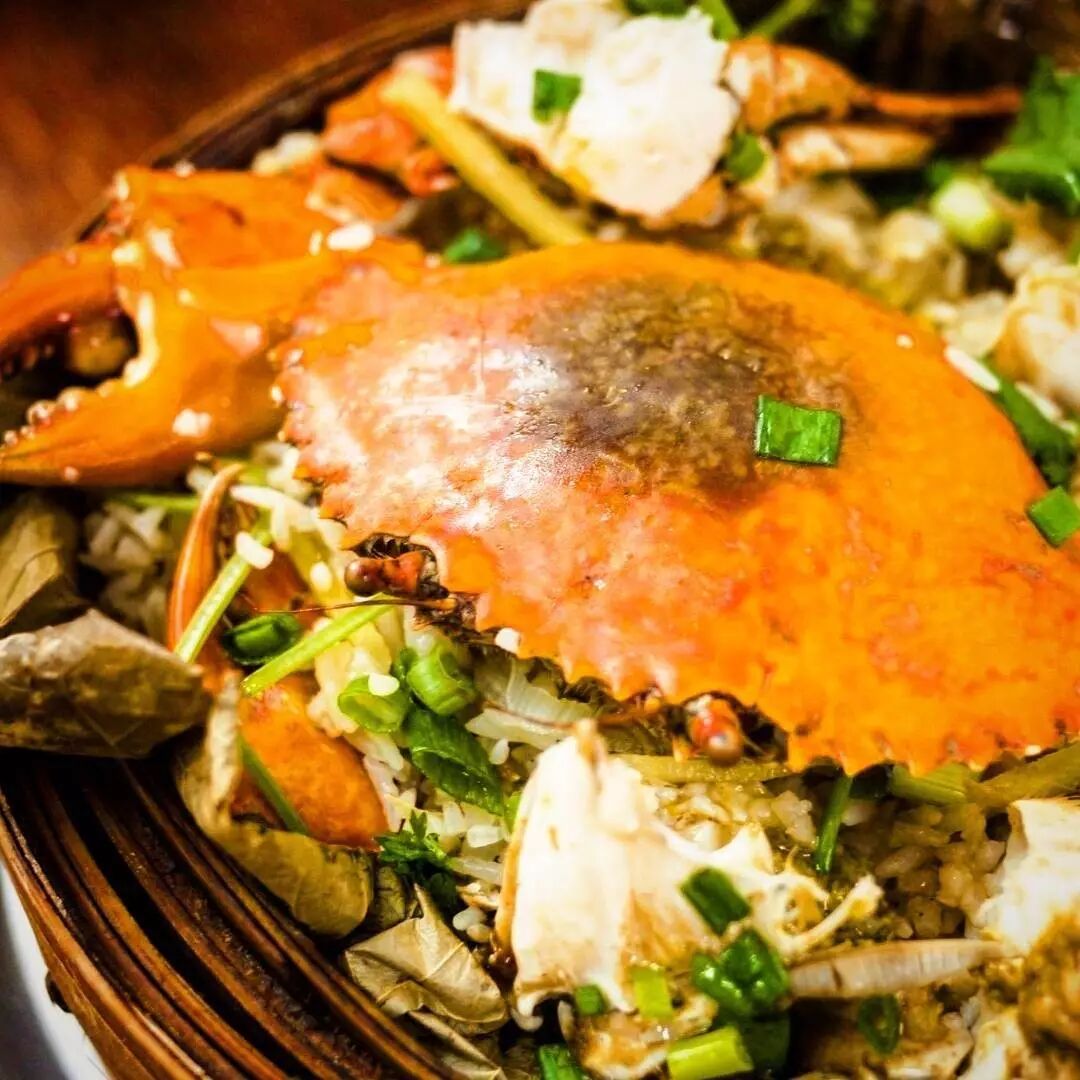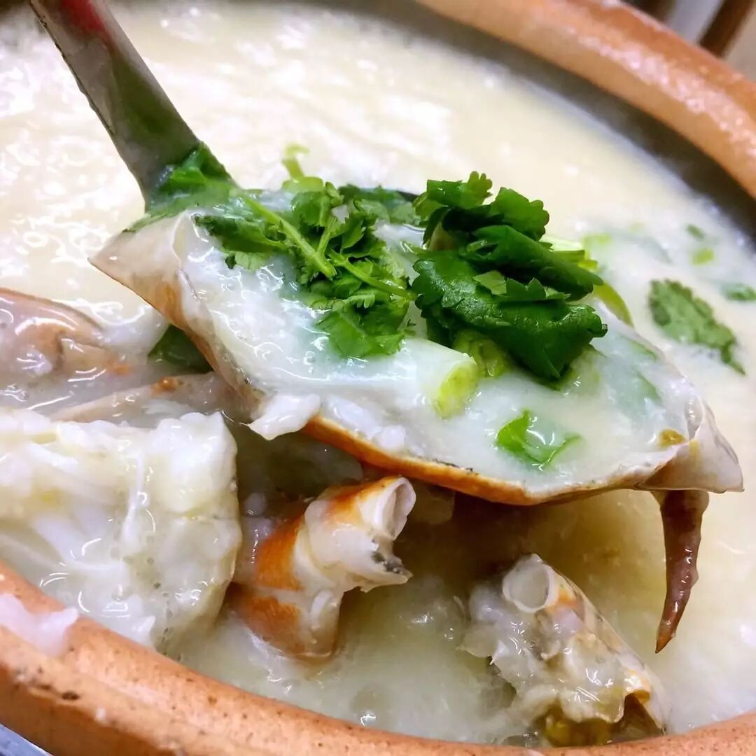 招牌生滚膏蟹粥是很多人慕名而来的最大理由,蟹粥选用本地新鲜的原只奄仔蟹,经过精心熬制,粥底软绵,米都煲得化开,更加了腐竹一齐煲,浓郁可口。能尝到这么美味的蟹粥也不枉大家从千里赶来。