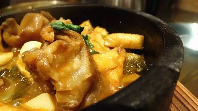 又比如说这碗鱼高汤鸡枞羹,打了一点点薄薄的葛根粉,就把鸡枞的香味鲜味全部包裹起来了。汤水滚烫又顺滑,只能让它往喉咙里流。