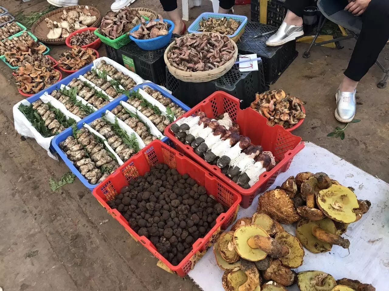 云南有八百多种野生菌。每年六月初,菌子就开始大批量上市,最开始的是牛肝菌、然后是青头菌,到了八九月份,鸡枞、鸡油菌、谷熟菌、灰菌开始上市,最后是羊肚菌和白菌,几乎覆盖全年,仅仅是春季两三个月不出产菌子。