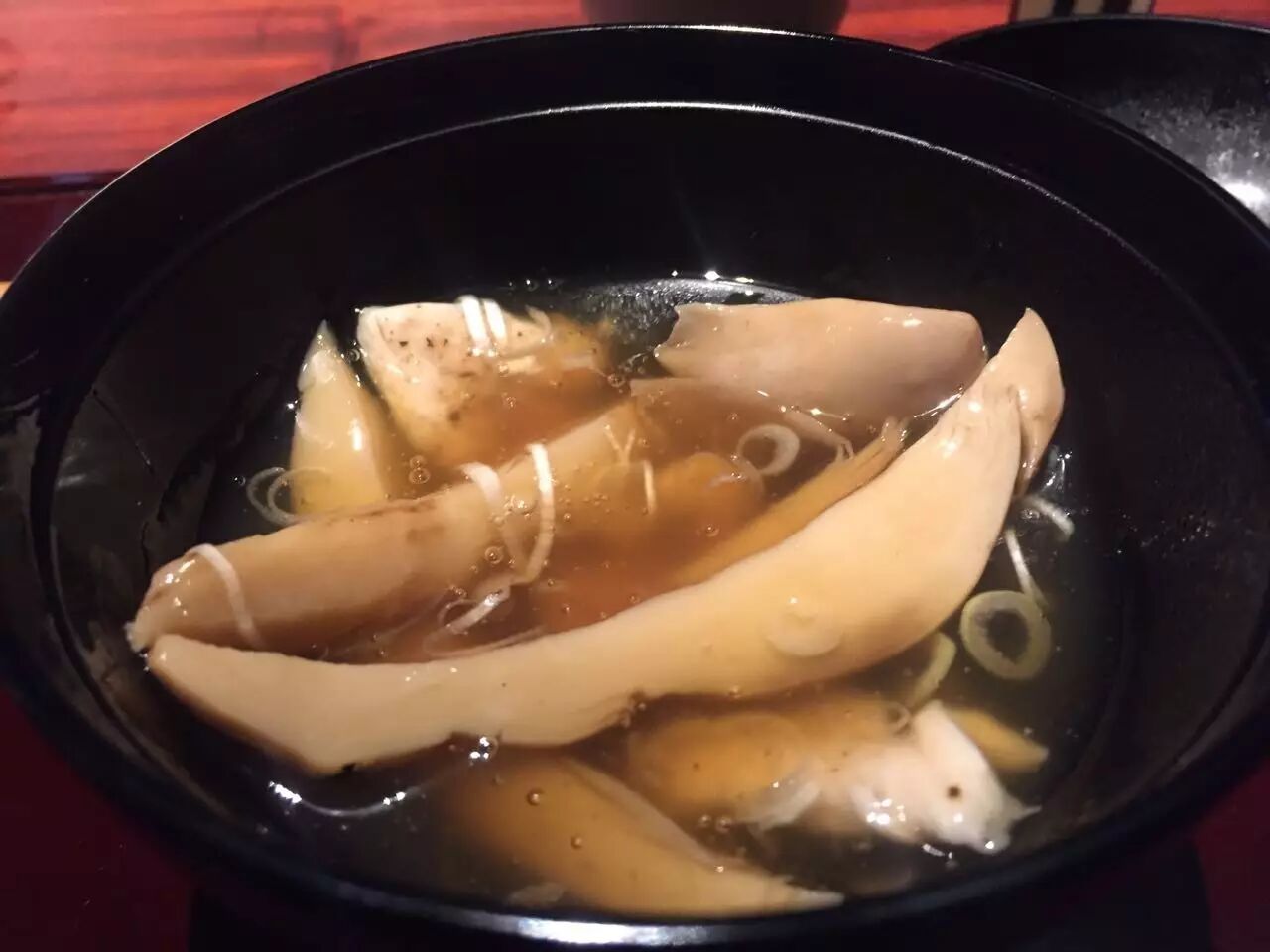 松茸是市场上的新贵,是日本人的心头好。甜,香,清秀,十分独特。松茸是可以当刺身吃的,充满了它温柔的香气。我吃过一次好松茸,长度达到将近两尺,菌帽没有开伞,个体饱满。配合着鱼籽、芝麻、山葵泥一起吃,甜美如出入寺庙的善男信女,自有一股禅意。