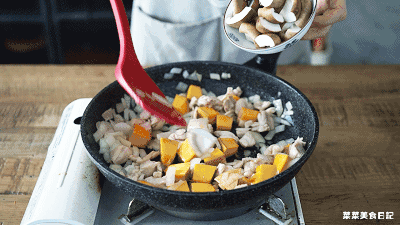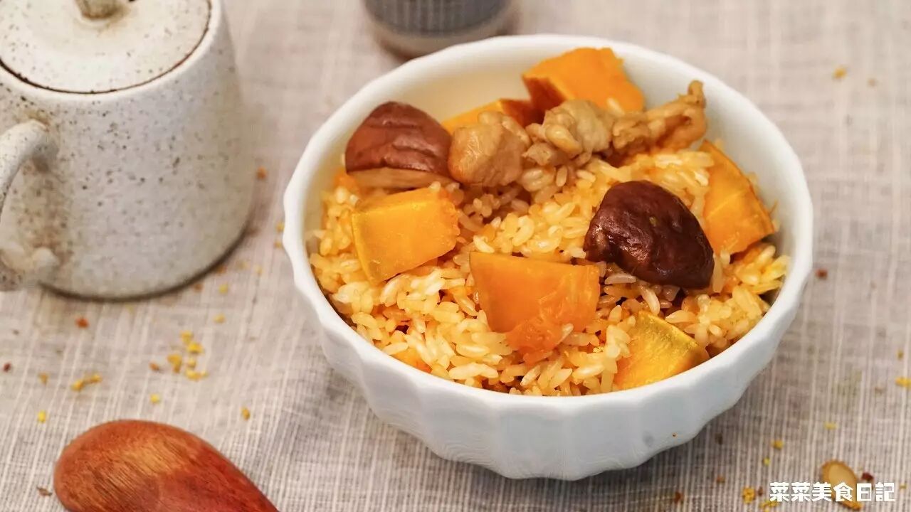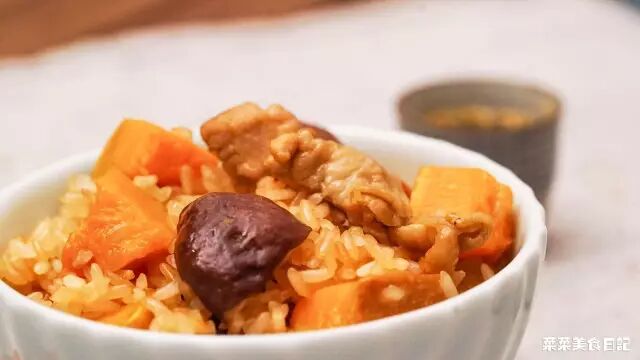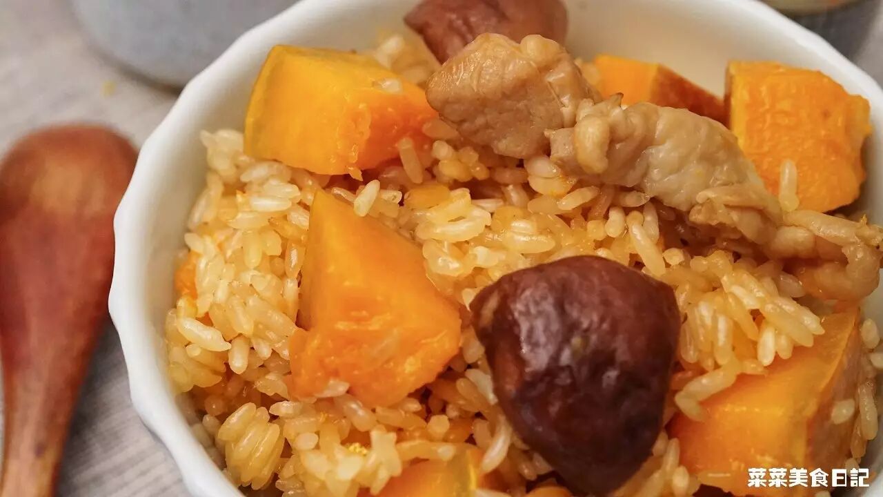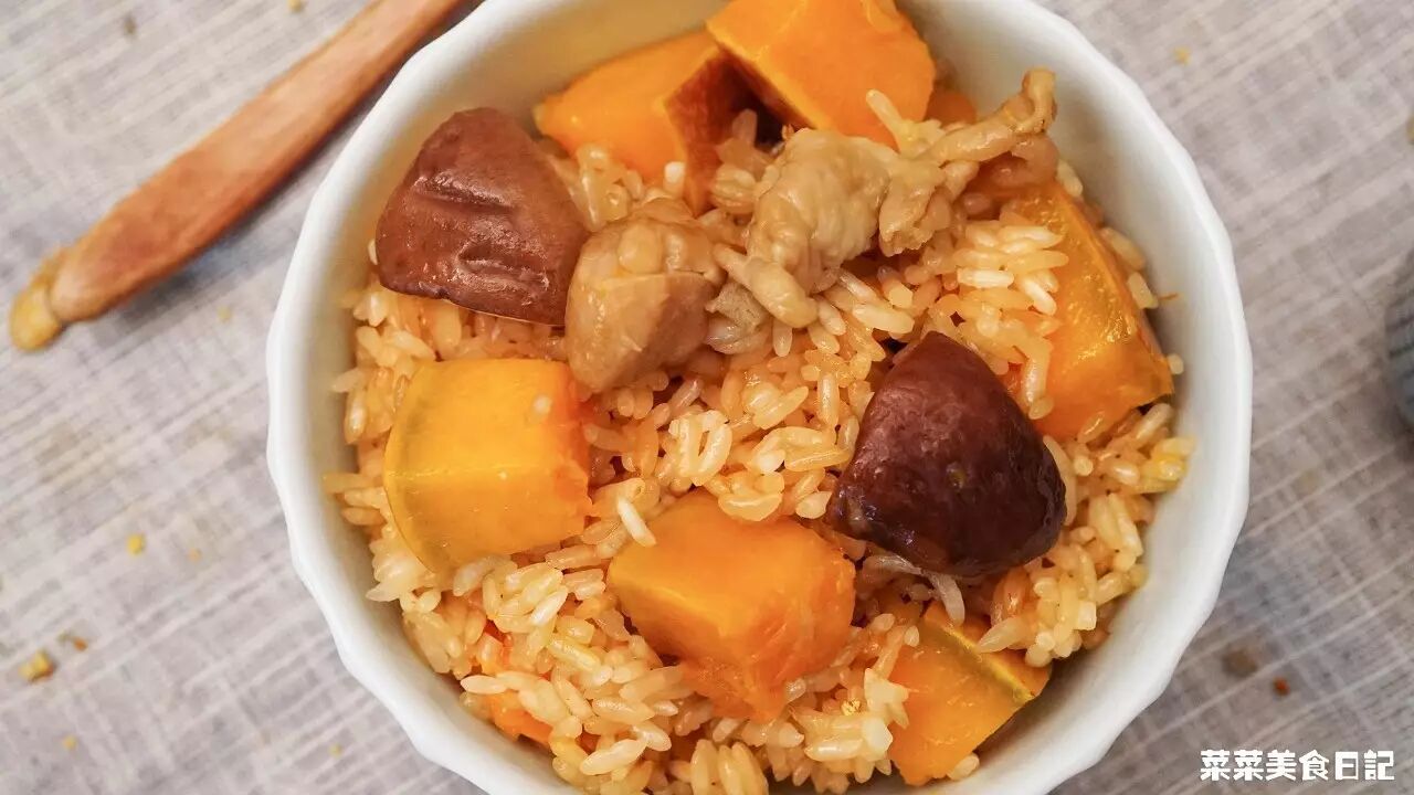 但最妙的还是与饭同煮,南瓜和米饭的香味互相交融,再加点嫩滑的鸡肉,荤素就齐活了。