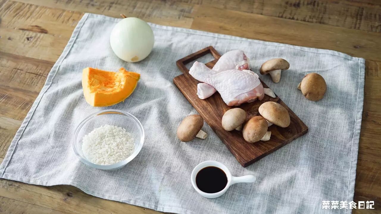 南瓜150g 米1小杯 鸡腿2个 香菇5朵
