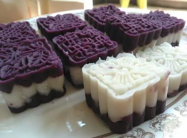 紫薯和山药都富含丰富的营养,热量比普通的蛋糕要低很多,容易消化,老少皆宜。紫薯山药糕被称为中式的提拉米苏,但是小编觉得比提拉米苏更好吃。 5.桂花定胜糕