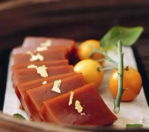 定胜糕是浙江传统的特色名点,具有春季养生调理,术后调理的功效。糕点比较软,有点松,带甜甜的豆沙味。传说是南宋时百姓为韩家军出征鼓舞将士而特制的,糕上有“定胜”两字,后就被称“定胜糕”。 6.蜜汁玫瑰芋头