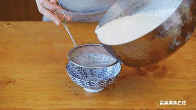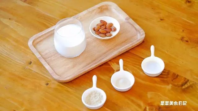 1.甜杏仁用牛奶泡一夜,一起放进料理机,打碎