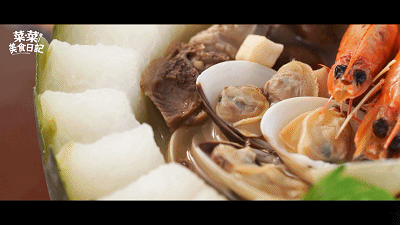 天气再凉一些,菜菜还喜欢冬瓜盅火锅,用一截两头都切开的冬瓜,放进锅中,再倒入先煮好的高汤,再配食材一起煮。冬瓜清凉,配上火锅,鲜美还不怕上火。大家在家也可以试试。